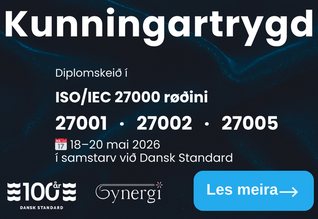Kom á diplomskeið í ISO/IEC 27000 røðini: ISO/IEC 27001 · 27002 · 27005. Tekna teg á synergi.fo