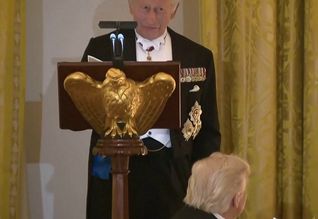 Donald Trump, forseti, luttekur á árliga tíðindafólka-døgurðanum. Stutt eftir at hann var komin, varð forsetin evakueraður