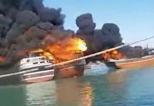 Eldur er í eini iranskari havn í Jask eftir eitt ógvusligt álop í kvøld, skriva iranskir ​​miðlar. Eldur er í yvir 100 fiskiførum, verður sagt