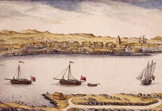 Vestaravág í Havn um 1784. Tvey bretsk deksfør liggja fyri teymi, og triðja kastar akker. Tey eru komin eftir marglætisvørum at flyta tollfríar til Stóra Bretlands. Úti á Rundingi hava vágsbotnsmenn lagt ríðingarbreyt at ríða á í fríløtum