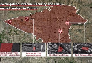 IDF sigur í fráboðan, at eitt stórt hernaðarligt kompleks í Teheran, sum hýsir Islamisku Kollveltingarhirðini (IRGC), Basij, serdeildini hjá IRGC og fregnartænastu er rakt