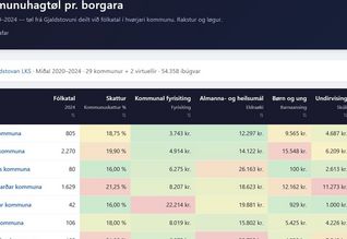 Heimasíðan Kommunan.fo vísir lyklatøl hjá kommununum frá Gjaldstovuni, bæði grafiskt og í talvu, so til ber at samanbera kommunurnar
