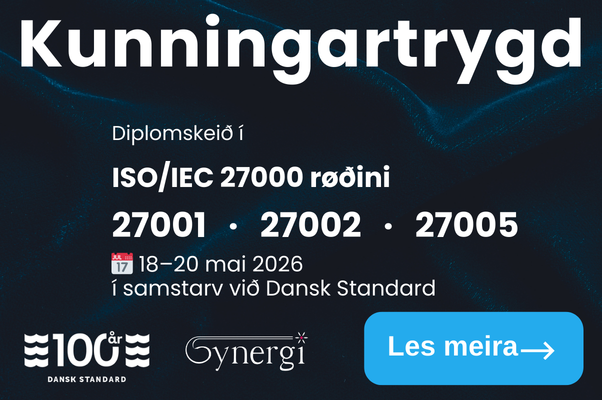 Á hesum 3-daga skeiðinum fært tú eina gjølla innleiðslu í ISO/IEC 27001, 27002 og 27005 – altjóða standardar, sum verða brúktir til at skipa og stýra kunningartrygd í fyritøkum og almennum stovnum.