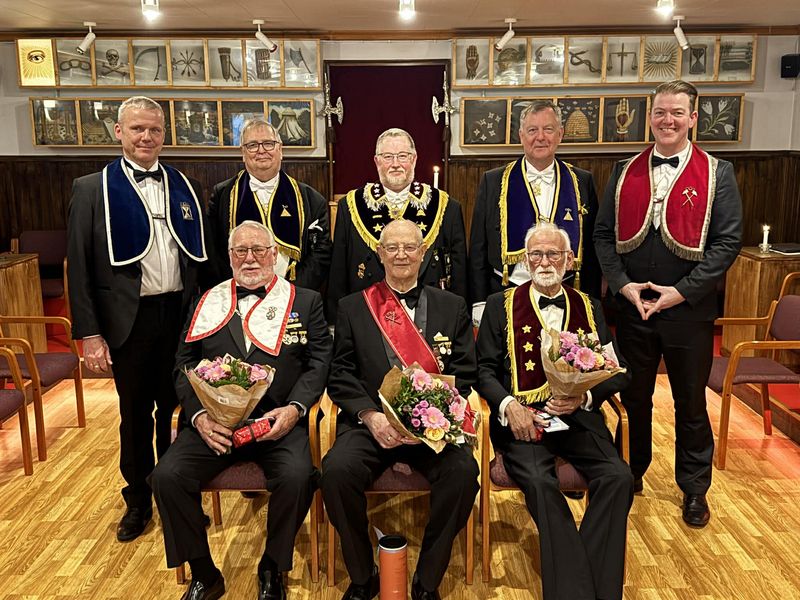 Kvøldið endaði við samveru, har brøður og gestir høvdu høvi at fagna teimum trimum heiðraðu og minnast teirra mongu ár í tænastu fyri losjuna.