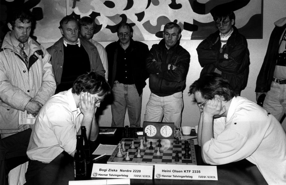 Fyrst í 90-unum - á sumri 1992 - koma tveir av heimsins bestu telvarum til Føroyar at vera eina tíð. Hetta eru Predrag Nikolic og Ivan Sokolov úr Bosnia-Herzegovina. Teir eru í veruleikanum flóttamenn, tí kríggj herjar í heimlandinum. Klaksvíkar Talvfelag hýsir Nikolic, og Havnar Telvingarfelag Sokolov. Báðir taka sær fyri at venja telvararnar í hesum feløgum, og ivaleyst vekja teir ansin fyri telving millum teir yngstu.