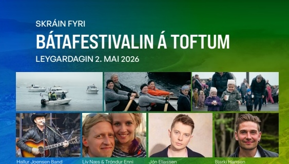 Her er skráin fyri Bátafestivalin á Toftum leygardagin 2. mai 2026 og Várdagar 25. apríl til 2. mai.