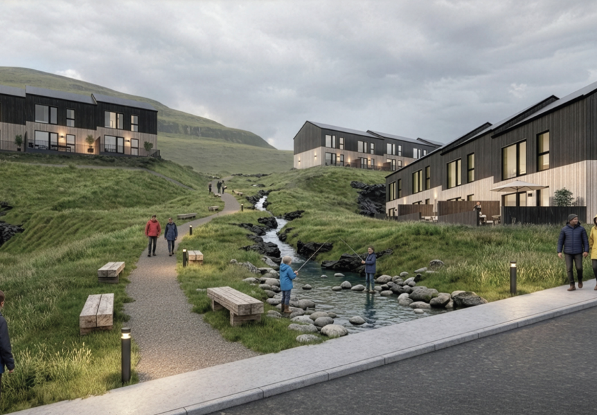 Klaksvíkar kommuna: Ein nýggj og umfatandi bústaðarútstykking undir Fossum í Klaksvík er nú komin eitt týðandi fet nærri veruleikanum. Á býráðsfundi hóskvøldið 27. november 2025 samtykti býráðið einmælt at bjóða út eitt stórt lendi á Fossum til bústaðabyggingar.