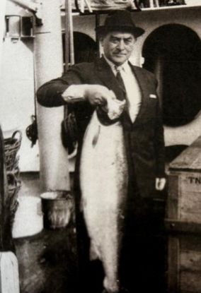 Nakrar setur blivu gjørdar aftrat, og vit komu inn aftur á Havnina áðrenn páskir við nøkrum hundrað laksum. Og, mín sann, um ikki sjálvur Kristjan Djurhuus, løgmaður, var komin á støð, niðri við Fiskasentralin á vestaru kaj í Havn at taka ímóti.