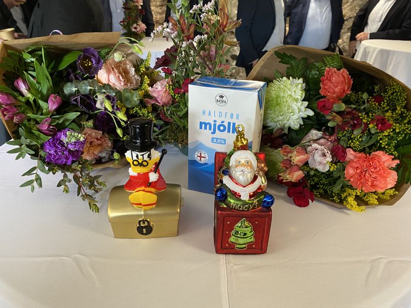Ruth handaði nýggja landsstýrismanninum í fíggjarmálum eina sparibússu við Onkel Joakim og ein Jólamann.