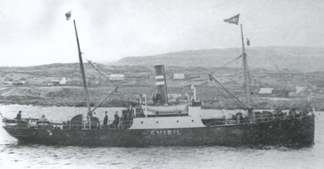 Hjørdis og mamman sigldi við hesum Smirli til Sumbiar. Ferðin tók tólv tímar. Smiril á Havnarvág umleið 1920. (Mynd Havnin fólk og yrki)