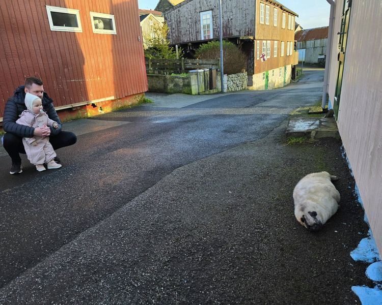 Hann hevði í morgun leitað sær langt niðan í bygdina og dámar væl at verða koyrdur túr í einum vogni, verður millum annað sagt á facebook bólkinum Nólsoy NÚ & TÁ.