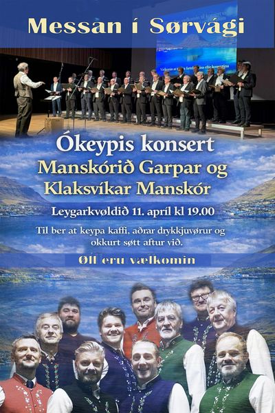 Garpar: Vælkomin til ókeypis forvitnisliga konsert í Messuni í Sørvági leygarkvøldið 11. apríl kl. 19.00.