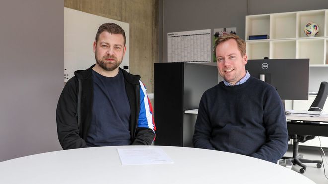 Ólavur Mikkelsen og Jonas Nielsen eftir at nýggja avtalan er undirskrivað – Mynd: Hans Erik Danielsen