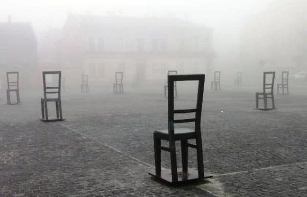 P.S. Myndin er av einum minnismerkið yvir Jødar, sum er av 70 tómum stólum á Zgody torginum í Krakow. Teir tómu stólarnir ímynda fyrst og fremst fráveru, miss, sakn og tær røddirnar sum tagnaðu Ongi orð og ongi menniskju. Hvør stólur er eitt menniskja, eitt torg. Her væntar nakað. Og teir eru tigandi. Hava ikki orð. Og fyri at endurgeva Honnu Arendt: Við óndskapi fylgir ofta tøgn og normalitetur.