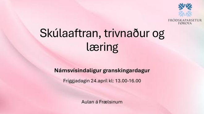 Fríggjadagin 24. apríl verður Námsvísindaligur Granskingardagur aftur á Námsvísindadeildini.