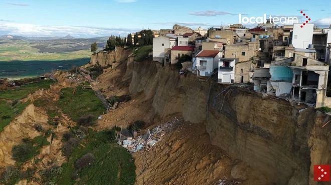 Umleið 1.500 fólk eru higartil flutt úr húsum sínum, eftir herviligt illveður í Niscemi á Siciliu.