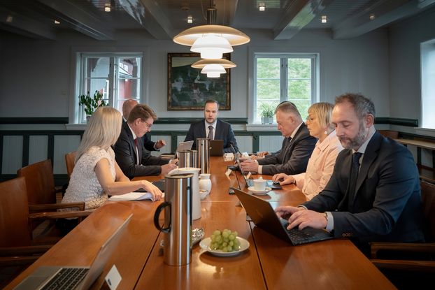 Nýggja landsstýrið hevði sín fyrsta fund i Tinganesi í morgun klokkan hálvgum níggju.