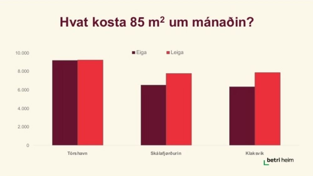 Kortini vísir nýggj greining, sum Betri Heim hevur gjørt av íbúðarmarknaðinum, at tað loysir seg betur fíggjarliga at eiga, heldur enn at leiga.