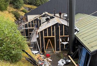Týsdagin 16. september vórðu sperrurnar til vestara skýli á Svangaskarði reistar. Talan er um tvey skýli, eitt eystanfyri og eitt vestan fyri Ítróttarhúsið