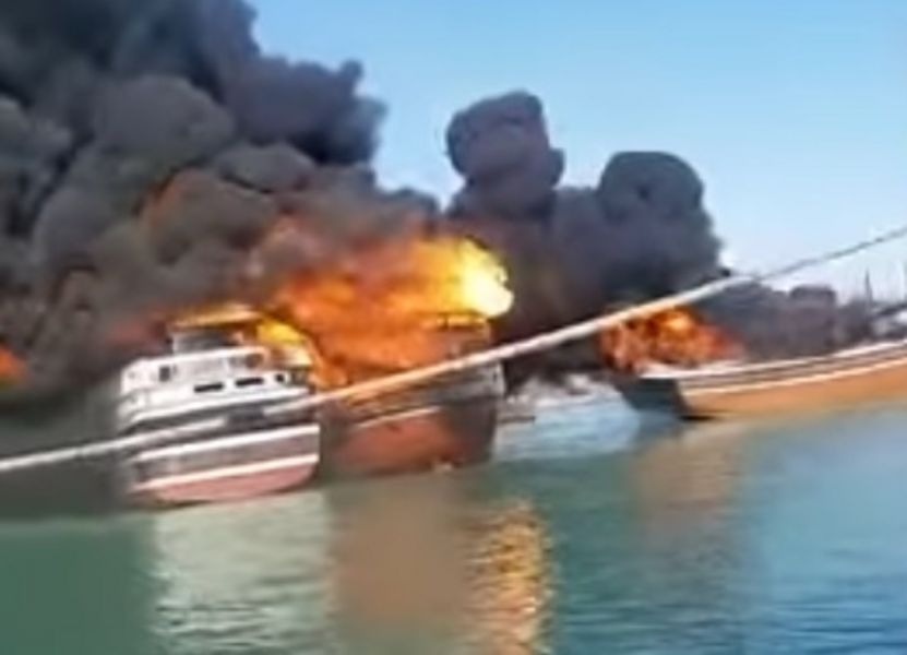 Eldur er í eini iranskari havn í Jask eftir eitt ógvusligt álop í kvøld, skriva iranskir miðlar.