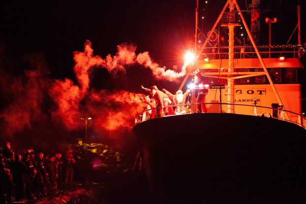 Børn og vaksin eru vælkomin oman á bryggjuna at heilsa uppá jólamennirnar, ið eisini bjóða pakkar til børnini.