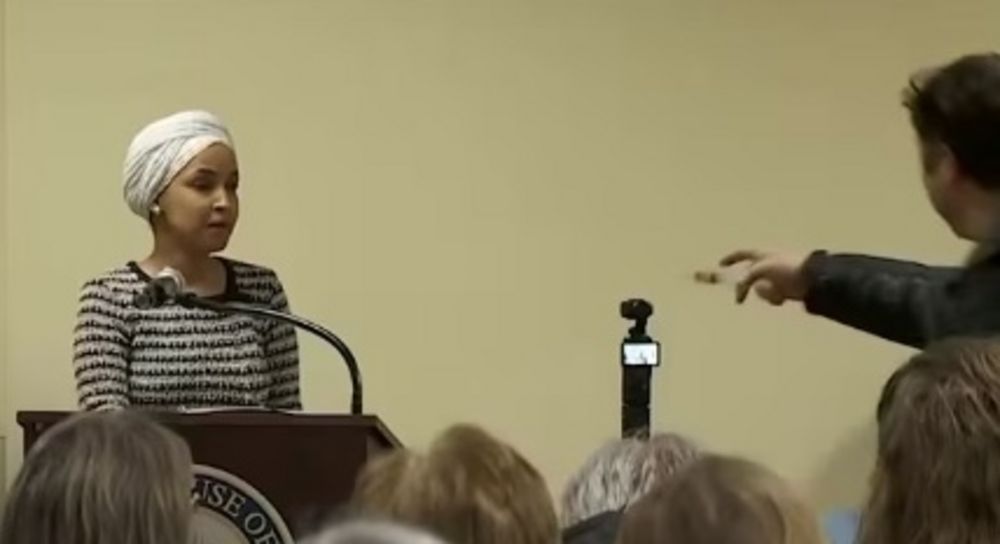 Omar varð sproytað í andlitið við sproytu undir einum veljarafundi í Minneapolis.