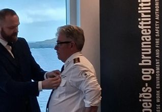 Landsstýrismaðurin í tilbúgvingarmálum, Bjarni K. Petersen, hevur handað fyrsta heiðursteknið fyri drúgva tænastu í føroysku tilbúgvingini