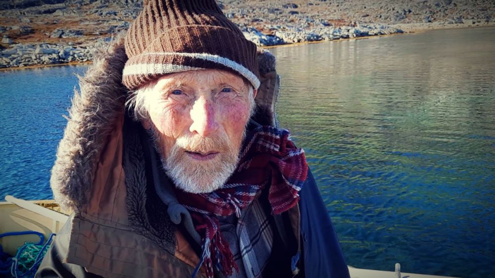 "Nei, halt kjaft," svaraði Mikkjal, meðan hann lat seg í ein jakka umborð á jolluni. "Nú eri eg vorðin 86 ár, og eg livi til eg blívi 100. Tað havi eg sagt í nógv Harrans ár. So tað kann vera, at mann kemur ein túr til Føroya um eini tvey ár."