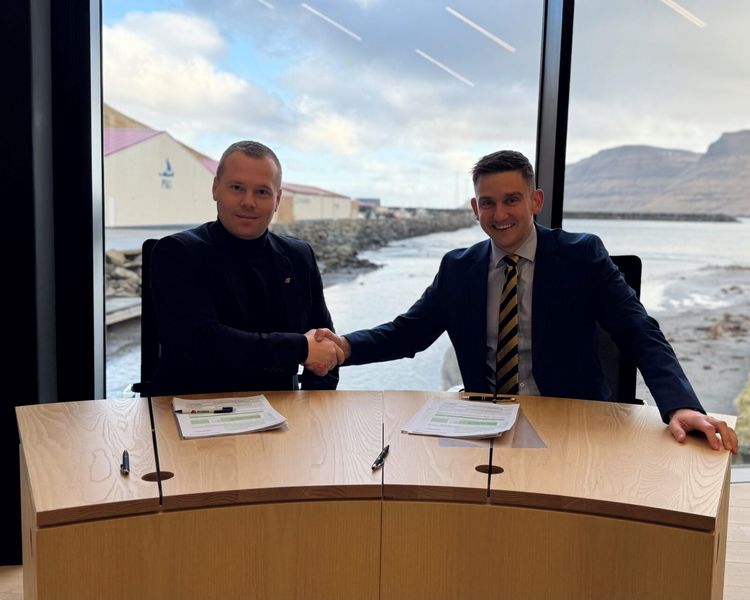 Borgarstjórin, Per Martin Gregersen, og Sigtór Petersen, stjóri í J&K Petersen, skrivaðu undir sáttmálan í býráðshúsinum mánadagin, 02.03.26.