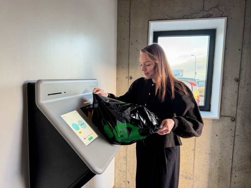 Soleiðis sleppa kundar í hesum Á-handlunum undan at koyra eina og eina fløsku í maskinuna í senn. Nú kanst tú koyra ein heila posa í einum. Hetta minkar munandi um møguligar bíðirøðir, og kundin nýtist ikki longur at fáa kleprandi fingrar, tá fløskurnar skulu latast inn aftur í býti við pant.