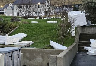 Nógvi vindurin síðstu nátt gjørdi, at flamingo, sum skuldi brúkast í samband við bygging av nýggjum matvøruhandli, fleyg um alla bygdina