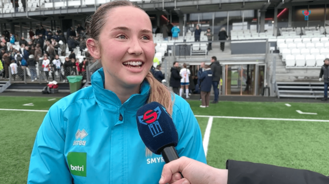 FSF Varpið: Tað var ein ógvuliga fegin Anna Caroline Brændstrup, sum FSF varpið fekk orðið á aftaná 1-0 sigurin á Georgia.