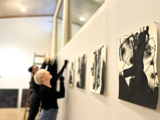 Tilfarið, ið er vatn, grafitt, olja, sandur og pappír er partur av einum ráari, frummyndaligari listahugsan, har rørslan innskrivar seg beinleiðis í tilfarið. Verkini kykna tessvegna millum kropp og ætlan, millum tilfarsligt skilvísi og visuella kanning.
