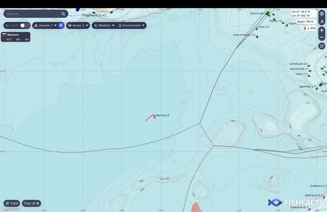 Russiska oljutangaskipið "Marinera", sum Russland hevur sent ein kavbát og fleiri skip at fylgja, kom fyri fyri stuttum í íslendskan sjógv.