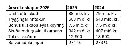 Inntøkurnar vóru tilsamans 563 milliónir kr, og av teimum vóru 342 milliónir útgoldnar kundunum fyri skaðar.