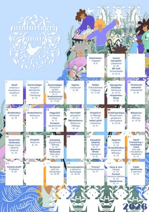 Undurfagri mai er eftirhondini vorði eitt fast og væl rótfest trivnaðarátak, sum ár undan ári skapar lív og rørslu í bygdunum. Skráin í ár fevnir bæði um tað, vit kenna og gleða okkum til, og tað nýggja, sum flytir okkum eitt sindur víðari, fær okkum at hugsa og undrast.