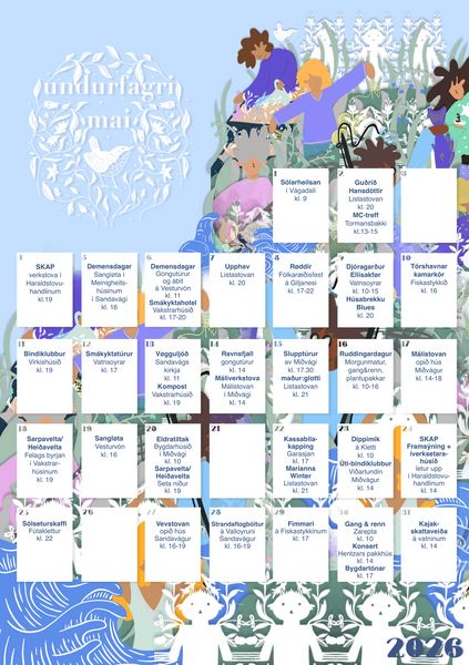 Fylgið við á facebook- og instagram hjá Undurfagra mai og á heimasíðuni hjá Vága kommunu. Eisini verður ein prentað skrá borin út í hvørt hús í Vága kommunu í komandi viku.