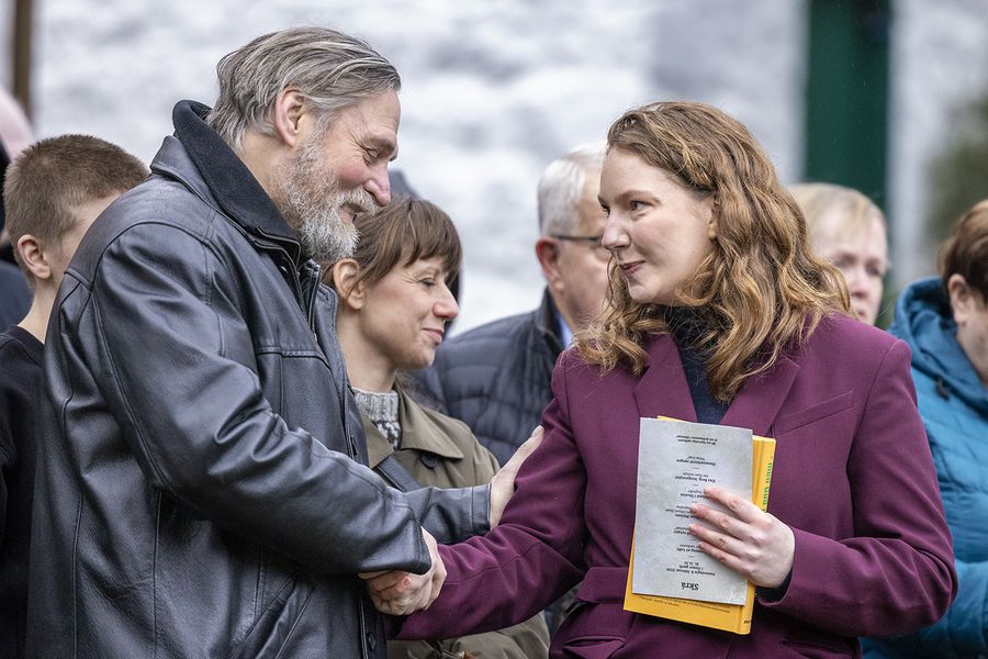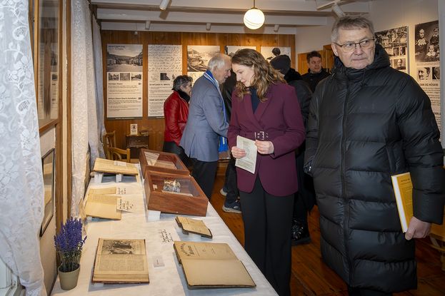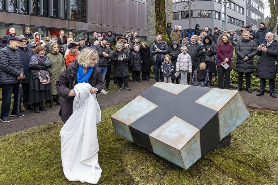 Nógv fólk var komið til avdúkingina, har Elsa Berg, borgarstjóri, helt røðu - Sí her
