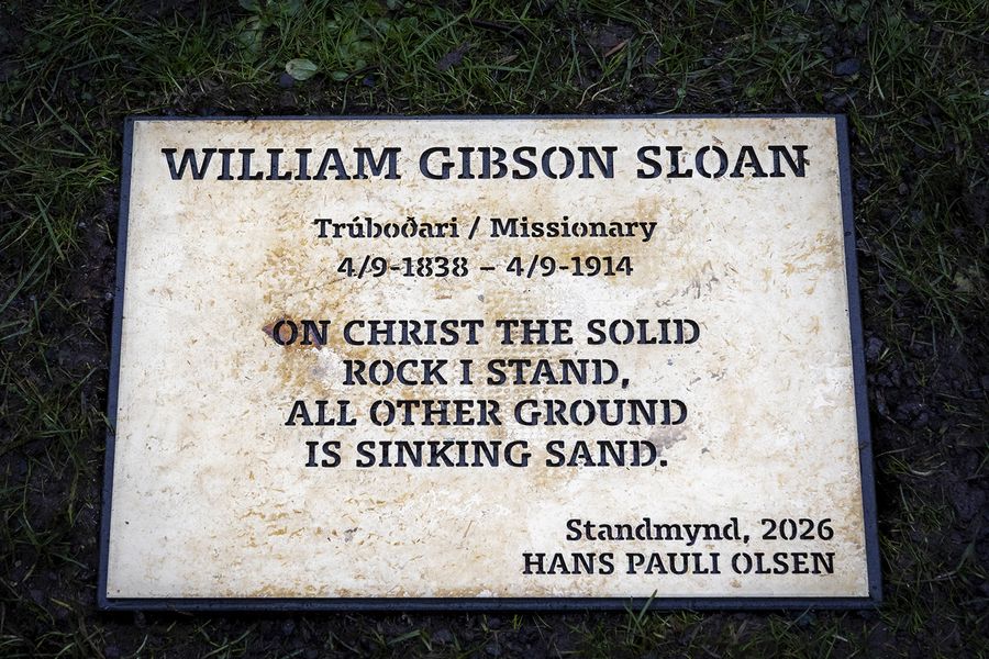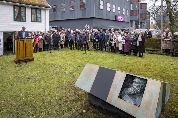 Tórshavnar kommuna: Hans Pauli Olsen hevur gjørt standmyndina, sum stendur í Sloans garði framman fyri Sloans hús við Tinghúsvegin, og sum varð avdúkað sunnudagin.