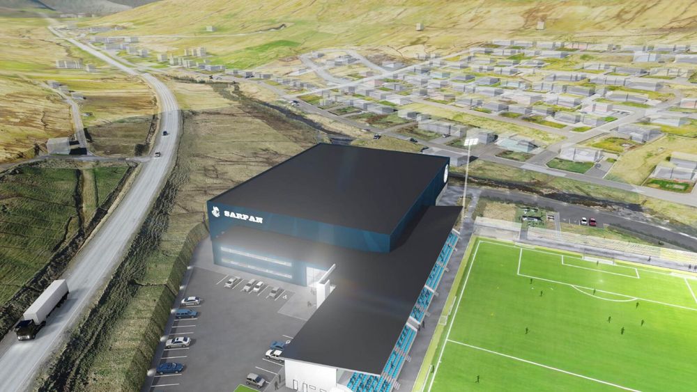 Fótbóltshøllin í Norðragøtu í Sarpugerði verður bygd saman við Víkingahúsinum - Mynd: www.FSF.fo