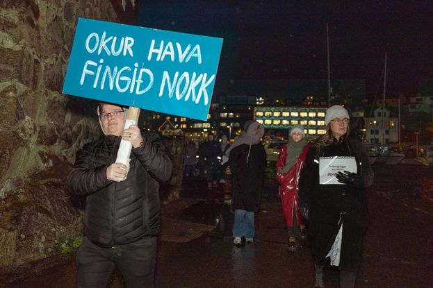 Tá Smyril hevði lagt at í morgun, gjørdu suðringarnir seg klárar til mótmælisgongu. Tað oysti niður, men tað løgdu tey lítið í - tey skuldu yvir í Tinganes, skrivar KVF.