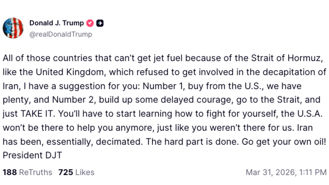 Amerikanski forsetin hevur tvey uppskot til lond, sum ikki megna at fáa brennievni orsakað av orkukreppuni, sum stendst av stongda Hormuzsundinum.