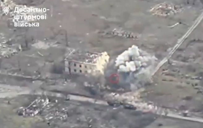 Herleiðslan í Ukraina deilir video á X, sum vísir ukrainsku serdeildirnar DShV leypa á russiskar herdeildir nærhendis Oleksandrivka.