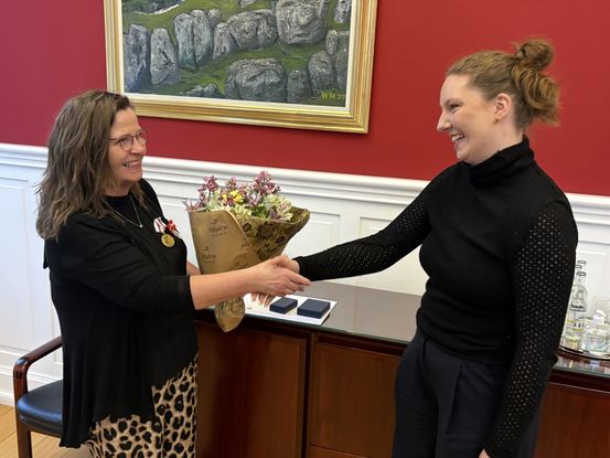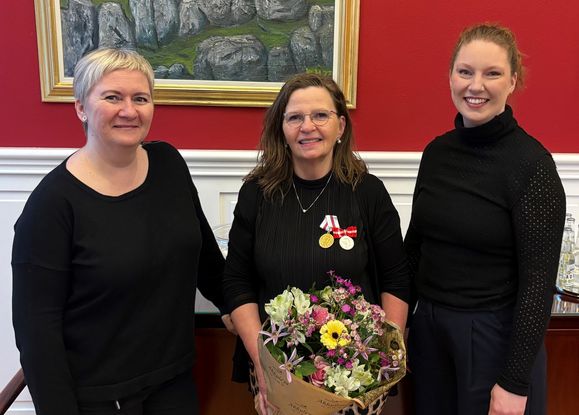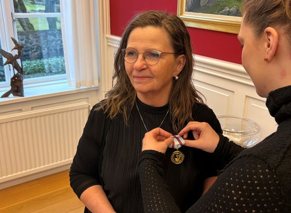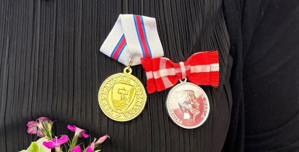 Tórshavnar kommuna: Unn Dam hevur í dag fingið Kongens fortjenstmedalje og gullheiðurstekin frá Tórshavnar kommunu fyri trúgva tænastu í samfull 40 ár.