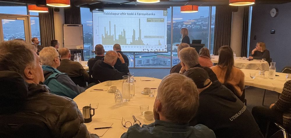 Granskarar á Havstovuni og Fróðskaparsetrinum løgdu fram um fiskiríkidømi, fiskiskap og havumhvørvi, og Silas Olufsson vísti sjófuglamangi á bankanum.