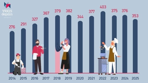 Tey 353 fólkini, sum byrjaðu í læru í 2025, læra innan 42 ymiskar útbúgvingar. Verða allir virknir lærlingar taldir við, vóru í 2025 yvir 1.250 fólk í ferð við at taka 66 ymiskar yrkisútbúgvingar í Føroyum.